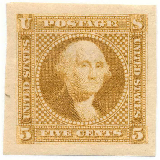 115-E2c 5c Washington plate essay in Buff on wove paper, OG, 1869, Imperforate